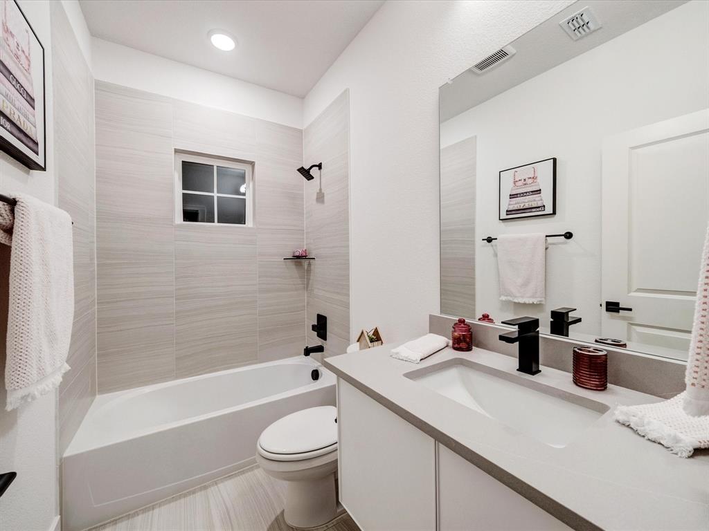 Ready Now! Home is a furnished model. Feel like a Royal in our Elizabeth plan. Step into the epitome of modern living with this brand-new Monarch Home, where architectural sophistication blends seamlessly with everyday comfort. This 5-bedroom, 4.5-bath masterpiece includes a spacious game room and a functional pocket office, offering versatility for both entertainment and work-from-home lifestyles. Designed for discerning tastes, the home boasts premium finishes throughout. The Chef-Inspired Kitchen is outfitted with a JennAir appliance package, including double ovens and a 5-burner gas cooktop, making it a culinary dream. Enjoy the elegant touch of quartz countertops, a pot filler, Blanco Silgranit sink, and soft-close cabinetry with upgraded hardware. A decorative backsplash adds a sleek, modern flair. Gather around the crystal-accented gas fireplace under the ambient glow of luxury Kichler lighting. The Karastan Cultivated wood flooring in common areas downstairs, combined with 8-foot doors and 12x24 sleek tile accents, creates a clean and contemporary vibe. The Resort-Worthy Primary Suite has a luxurious primary bath featuring floating cabinets, a large frameless glass shower, decorative tiles, framed mirrors, and quartz countertops with undermount sinks. Enjoy effortless indoor-outdoor flow with a large covered patio—perfect for entertaining, relaxing evenings, or weekend barbecues, rain or shine. Enjoy gridless modern windows that provide unobstructed views and flood the home with natural light. The community is in fabulous location near an abundance of shopping, dining, entertainment, just minutes from PGA. Located within the highly acclaimed Frisco Independent School District, this home ensures top-tier education in a thriving community. Every detail in this Monarch Home reflects a commitment to excellence and precision craftsmanship, promising a lifestyle of comfort, elegance, and modern flair.